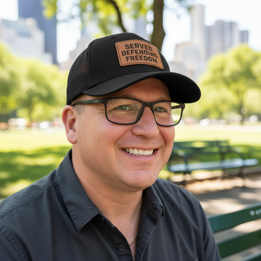 Wear your pride. Laser-engraved leather patch caps that honor service and style.